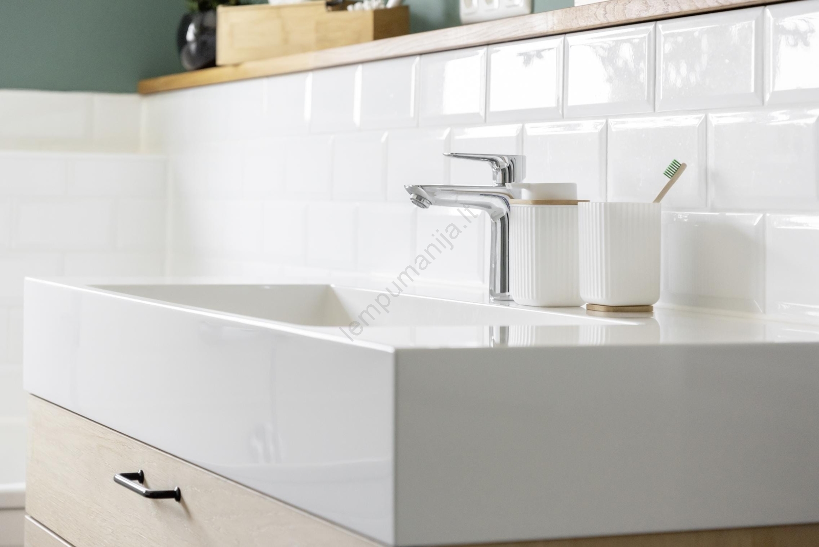 • Elegantiškas baltas dizainas su švelniu medžio akcentu.