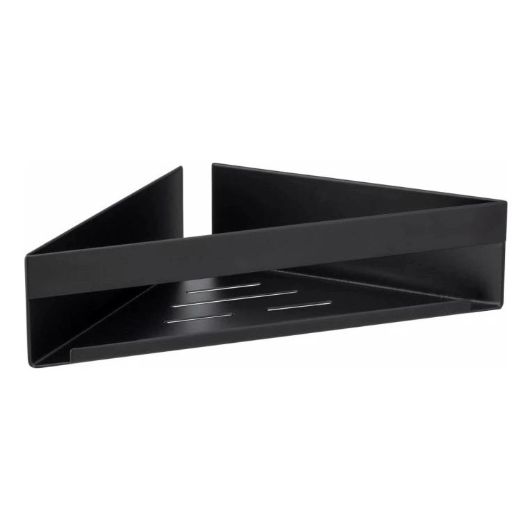 • Moderni kampinė lentyna elegantiškame juodame apdailoje.