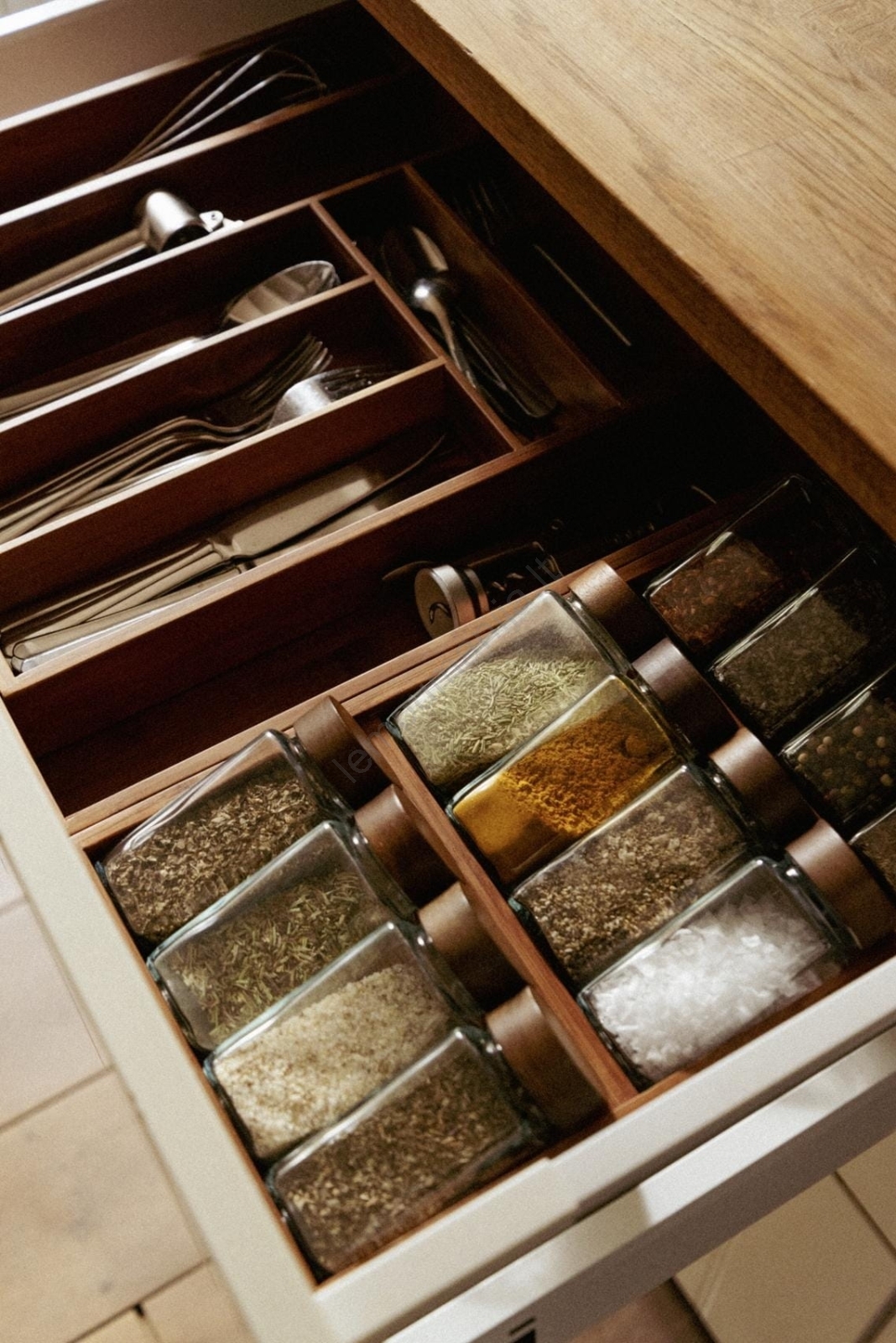 • Įstrižos pertvaros leidžia patogiai ir lengvai išimti prieskonių indelius.