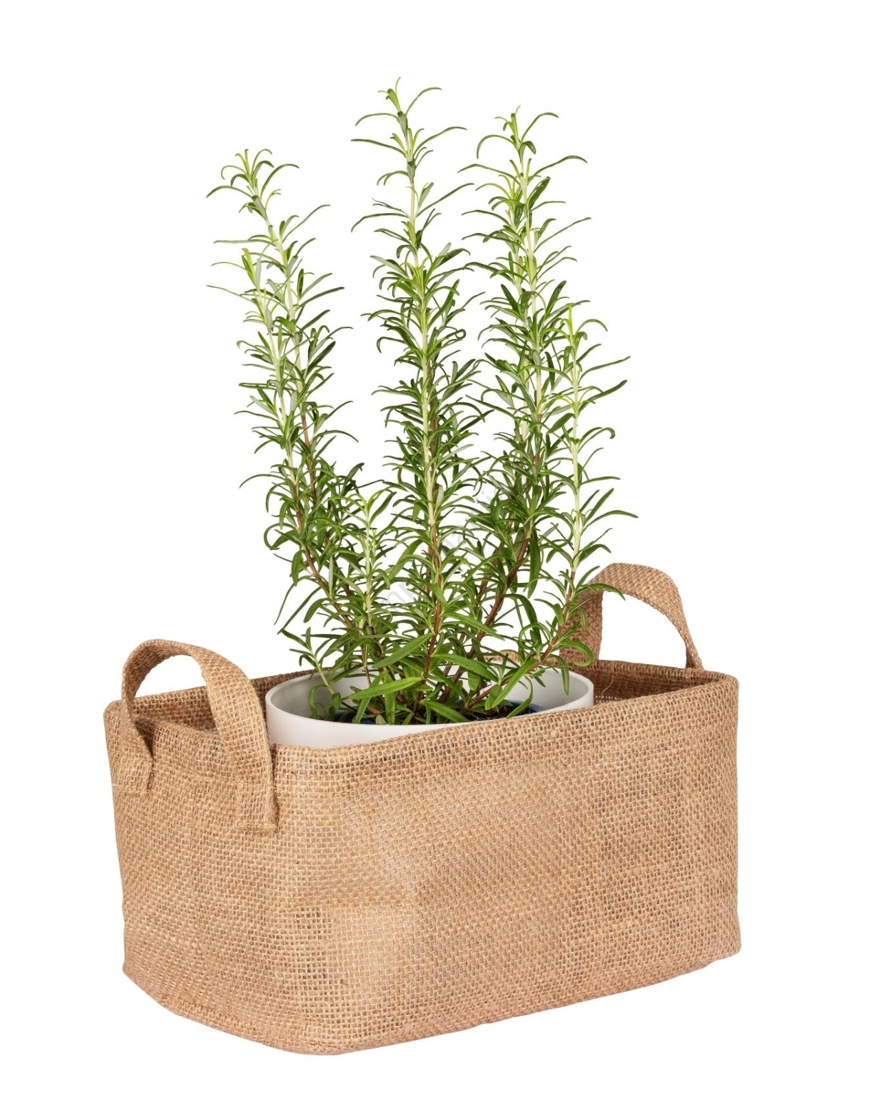 • Praktiškas natūralaus džiuto krepšelis stilingam namų tvarkymui.