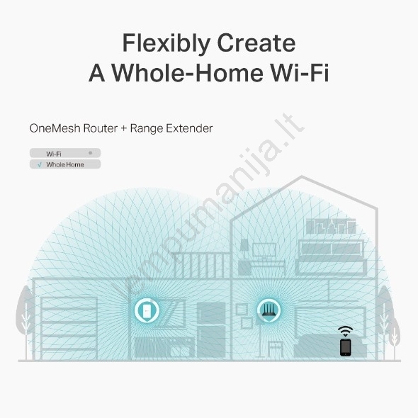 • Suderinamas su EasyMesh - Lanksčiai sukuria mesh tinklą prisijungus prie EasyMesh suderinamo maršrutizatoriaus, užtikrinant sklandžią viso namo aprėptį.