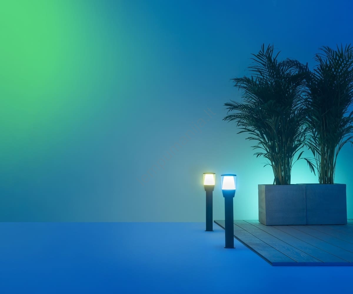 • Ši išmanioji apšvietimo sistema, visiškai integruota su Smart WiZ Connected technologija, leidžia pritaikyti savo sodą ar kiemą naudojant platų spalvų ir šviesos intensyvumo spektrą.
