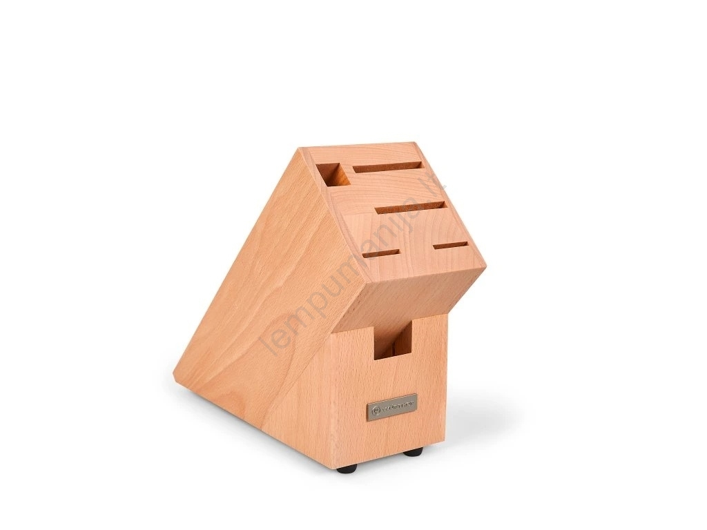 • Peilių blokas pagamintas iš buko medienos ir suteikia vietos keturiems peiliams, galandimo strypui ir virtuvinėms žirklėms.