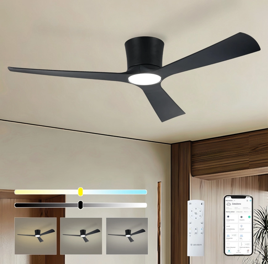 ZEVENTI - LED dimeriuojamas lubų ventiliatorius AUREX LED/24W/230V 3000/4000/6000K Wi-Fi Tuya juodas + nuotolinio valdymo pultas