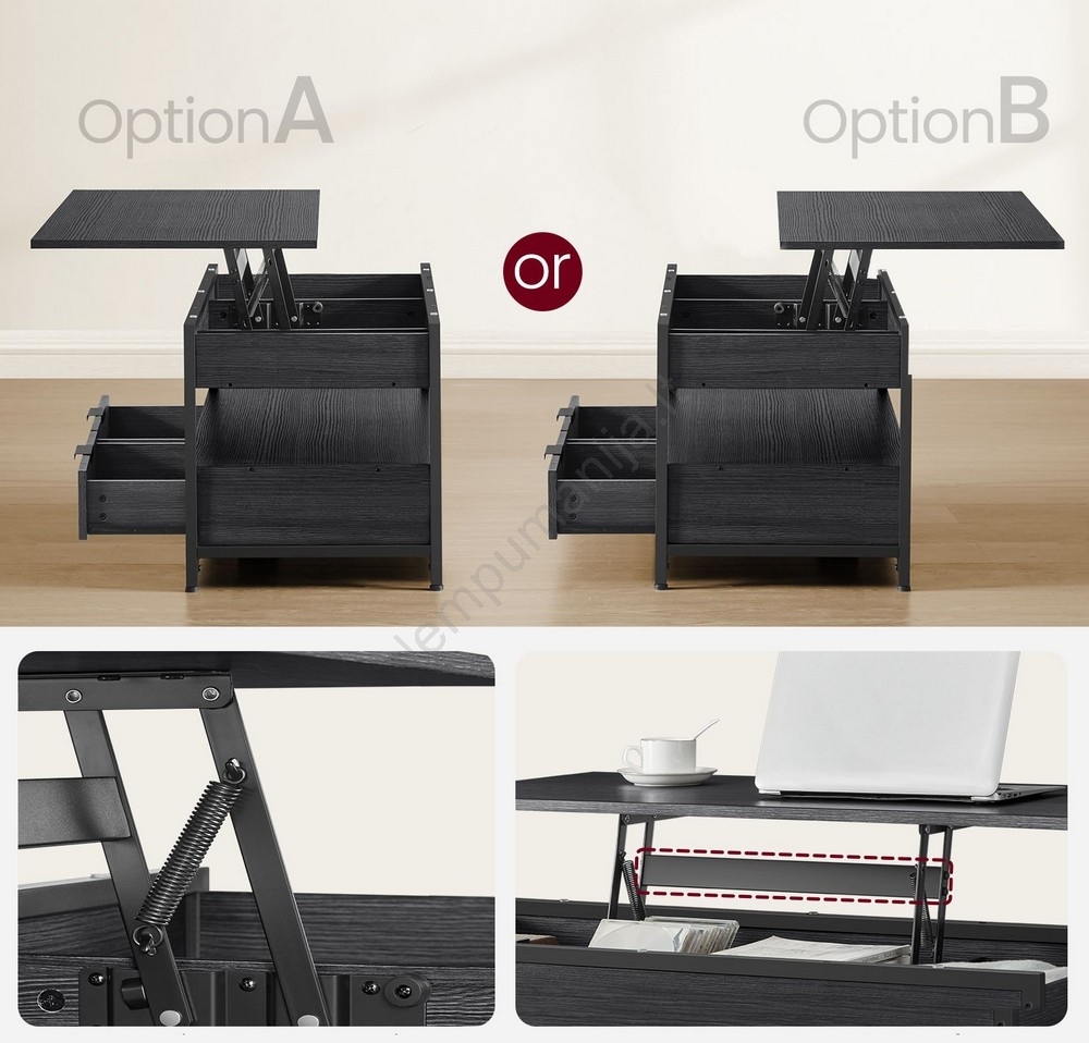 • Kavos staliukas su pakeliama viršutine plokšte NYRO, juodas